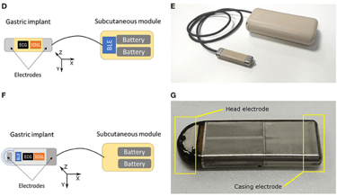 In this project, we evaluated the feasibility of acquiring useful electrocardiographic (ECG) and accelerometry (ACC) data from an innovative implant located in the gastric fundus. In a first phase, we compared data acquired from the gastric fundus with gold standard data acquired from surface sensors on 2 pigs. A second phase investigated the feasibility of deriving useful hemodynamic markers from these gastric signals using data from 4 healthy pigs and 3 pigs with induced HF with longitudinal recordings.
